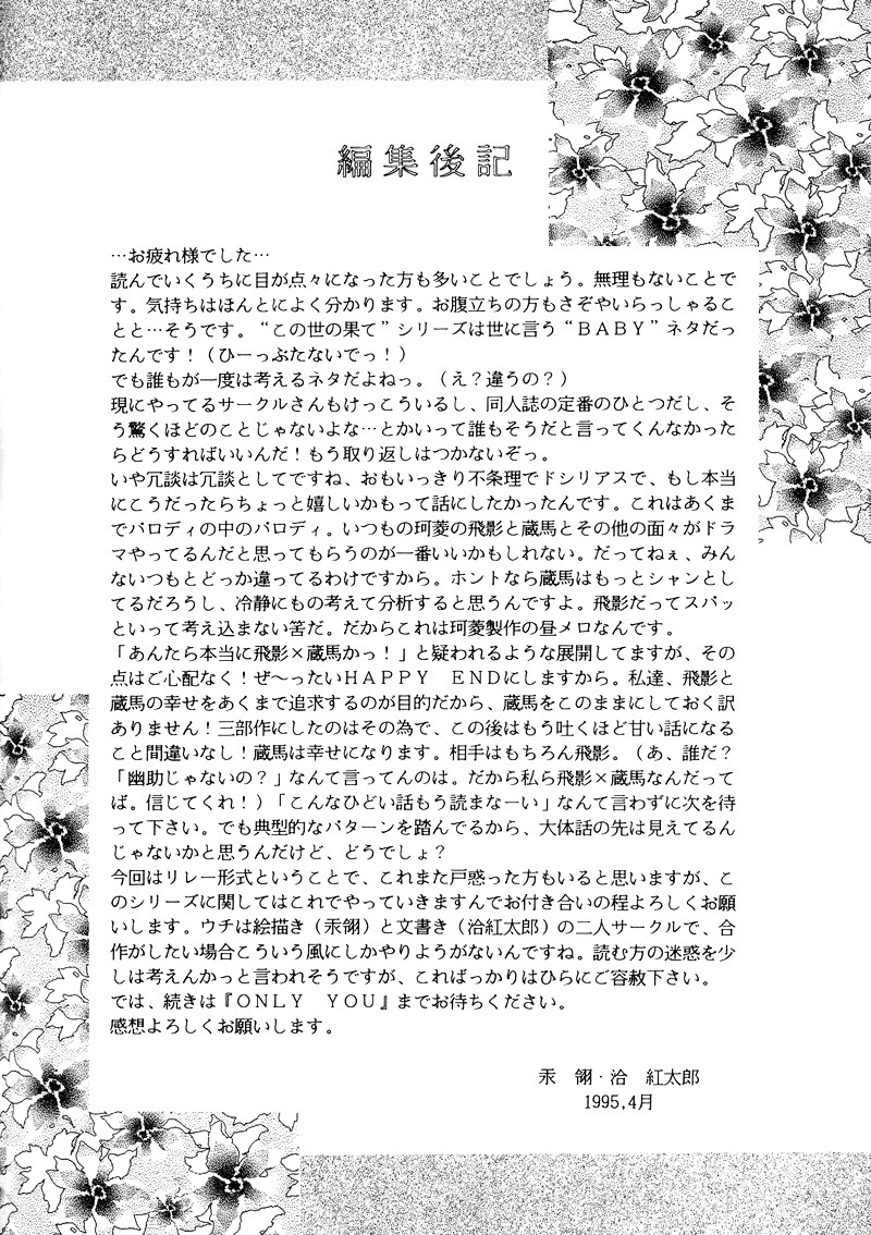 Posted indoujinshi hiei hiei x kurama kurama mizukane ryou nsfw romance “Love Me Tender” by Mizukane Ryou (Karyou) Posted by By Mod Lola January 16, 2019No Comments (Warning: mpreg) Raws: Sulki & Scanlation: Arigatomina Download Link Mod Lola Mod Lola, creator of the YYH-Revival community. View All Posts Post navigation Previous Post “I Guess It Could Happen” by Nakagawa AoNext Post“Silent Call” by Mizukane Ryou (Karyou)